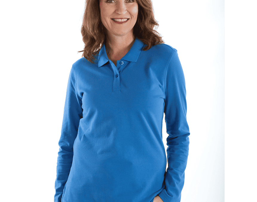 Pike med öppning och knapp bak dam blå lång ärm 7258