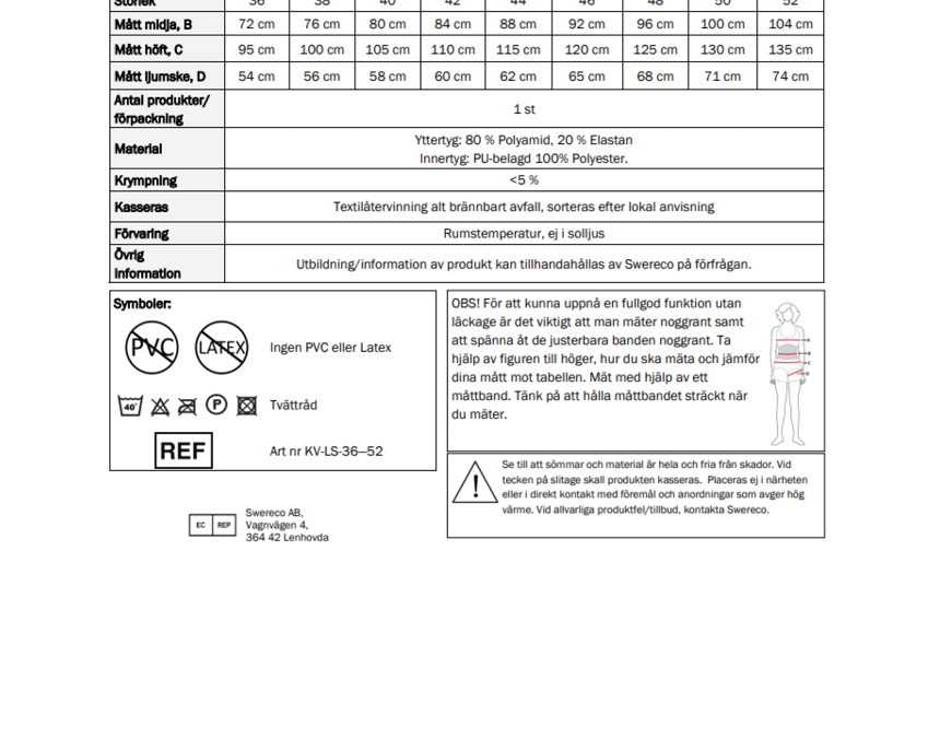måttabell badbyxa svart inkontinens