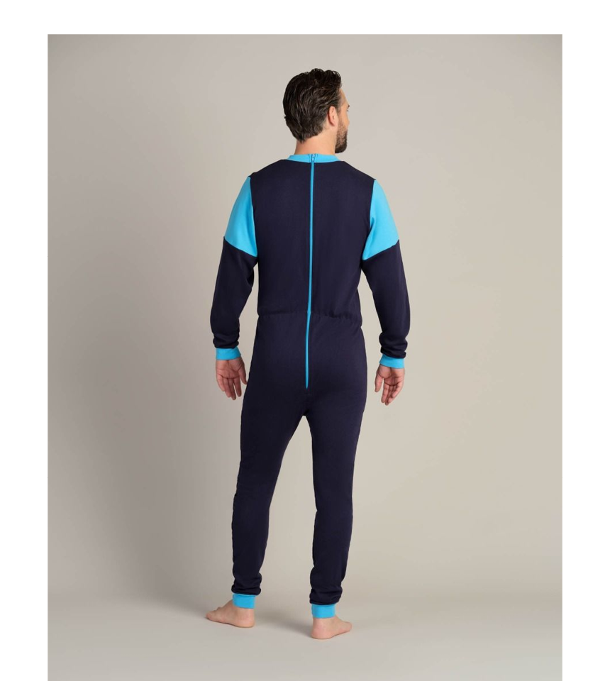 En lite kraftigare overall i 100% bomullstrikå. Hjälper till att förhindra plock med inkontinensskydd. Mjuk dragkedja i ryggen.