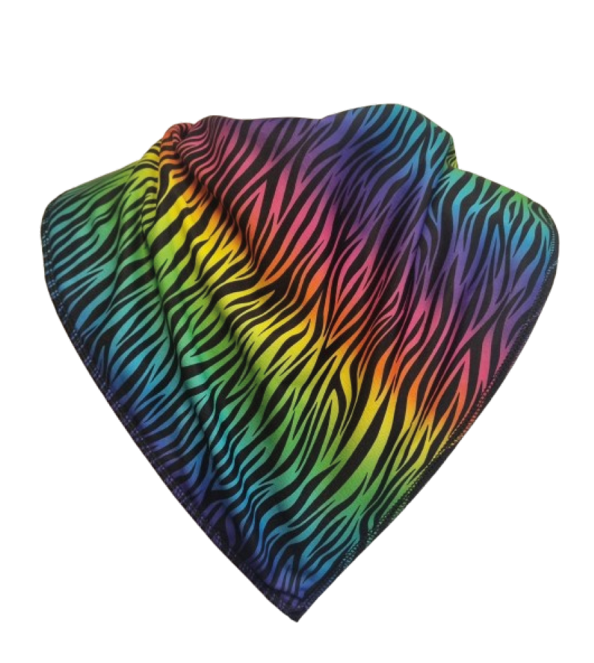 Snygga mönstrade salivskydd med fuktspärr av absorberande fleece på skyddets baksida.