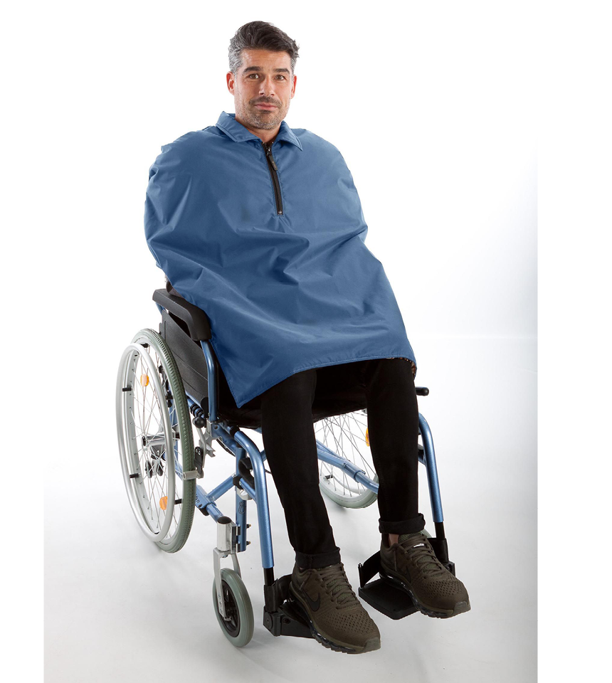 Cape med fleece-foder. Kort rygg, ca 40 cm. Inga ärmar. Skjortkrage med kort dragkedja. Väldigt enkel att ta av och på. Enfärgade. Maskintvätt 40 grader. Sys upp på beställning. Uppsydd vara bytes ej