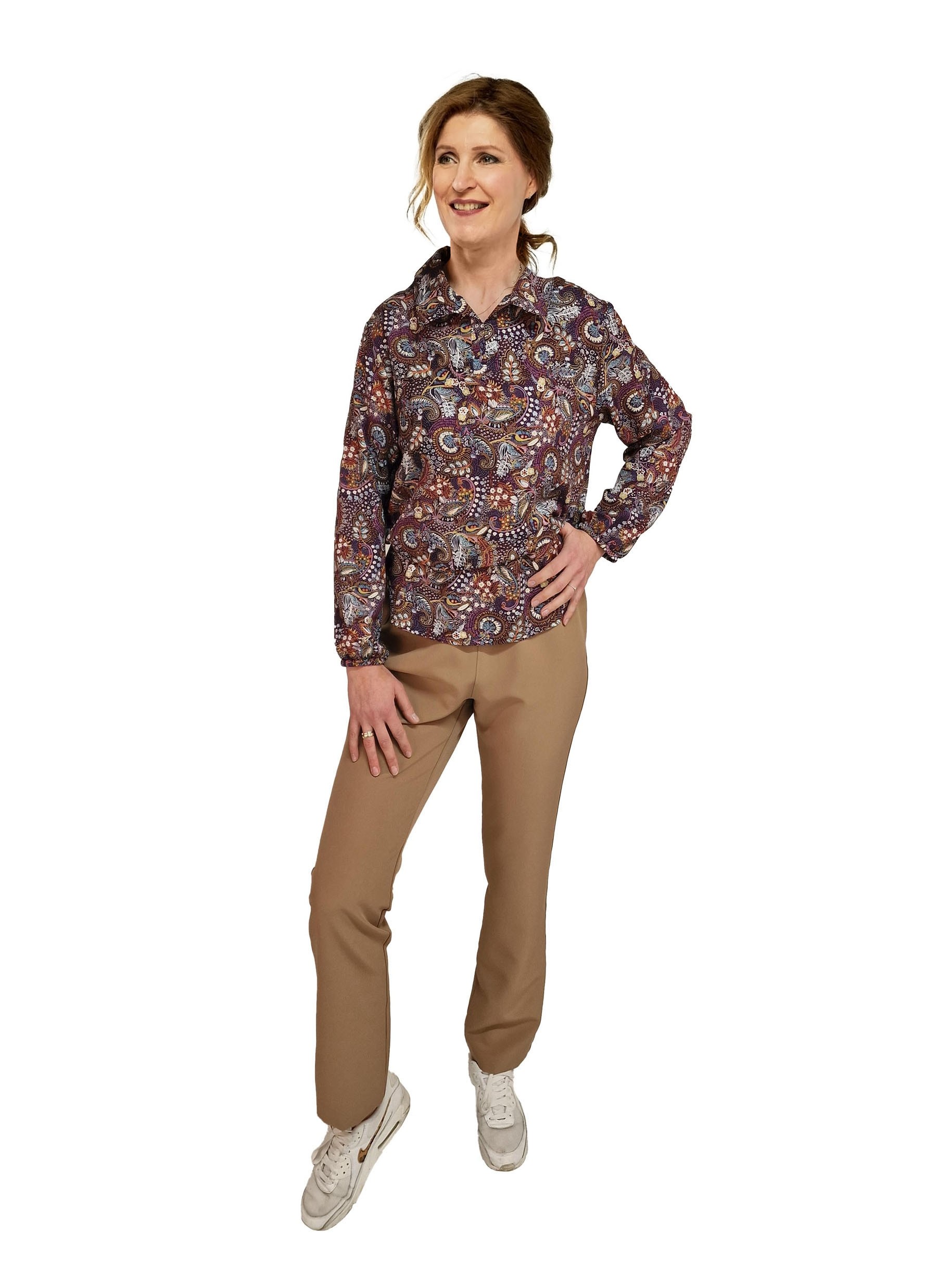 Hel overall som ger intryck av tvådelat . Byxa och överdel sitter ihop . Mjuk Resår i midjan . Dragkedja i ryggen förhindrar att kunden klär av sig själv. Plats för inkontinensskydd. Behagligt lättskött material.